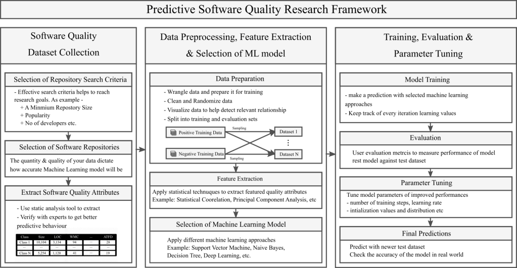 In this research, we use software quality features information and machine learning techniques to train the data and predict future behavior of software. To be more specific, we investigate the efficacy of detecting software quality features to automatically improve software quality. We analyze large number of software repositories and extract code quality features of all the classes of those software repositories. We use different machine learning techniques to build ML models and train code quality feature dataset to classify software quality features. Using ML automatic prediction on code quality features will allow software quality managers, practitioners to take preventive action against bad quality. Such proactive actions will allow software redesign and prevent code smell/vulnerabilities in the software life cycle.